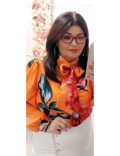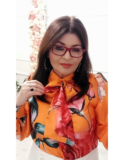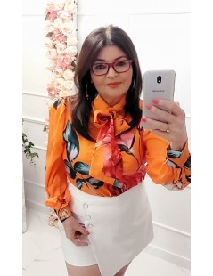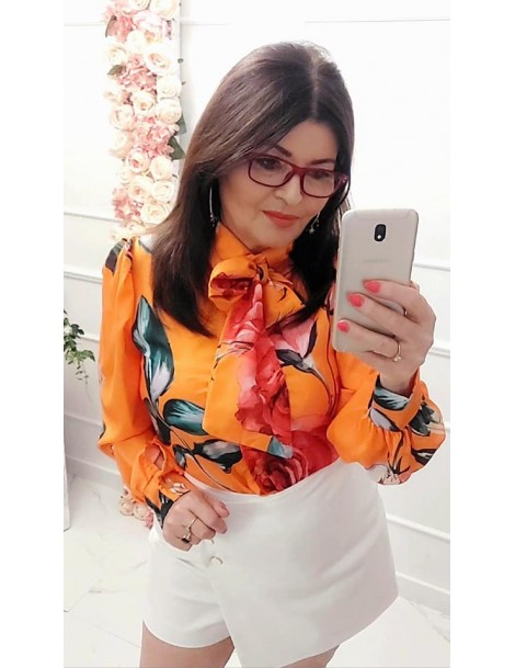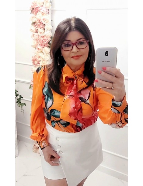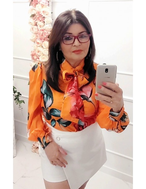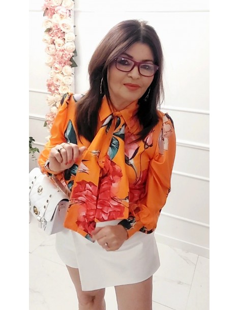 Bluzka koszula orange pomarańcz w kwiaty długi rękaw