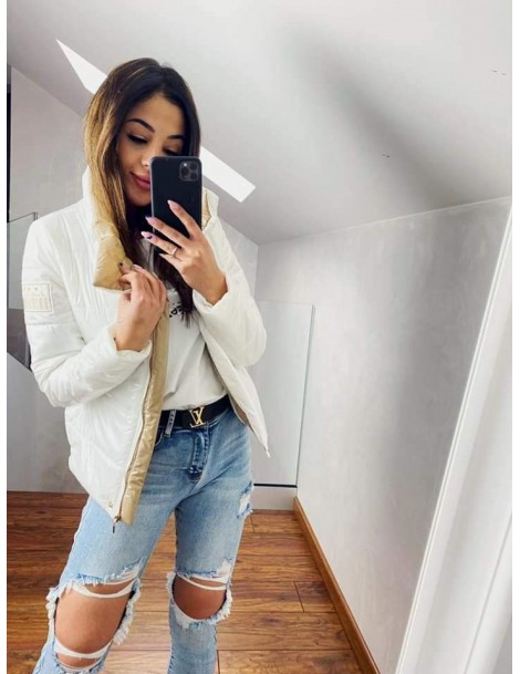 Prezentujemy Państwu Kurtkę z kolekcji Wiosna/Lato koloru kremowego z dodatkiem beżu