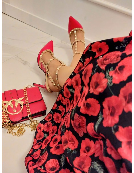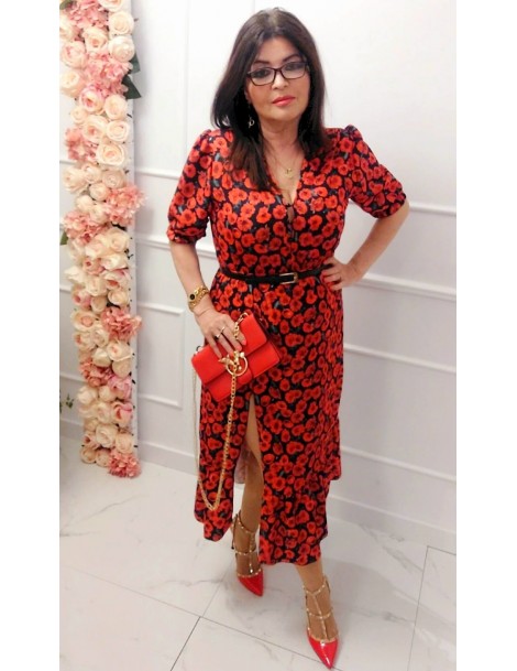 Sukienka Carmen w czerwone kwiatki