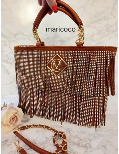 TOREBKA Massimo Contti frędzle cyrkonie ~ camel