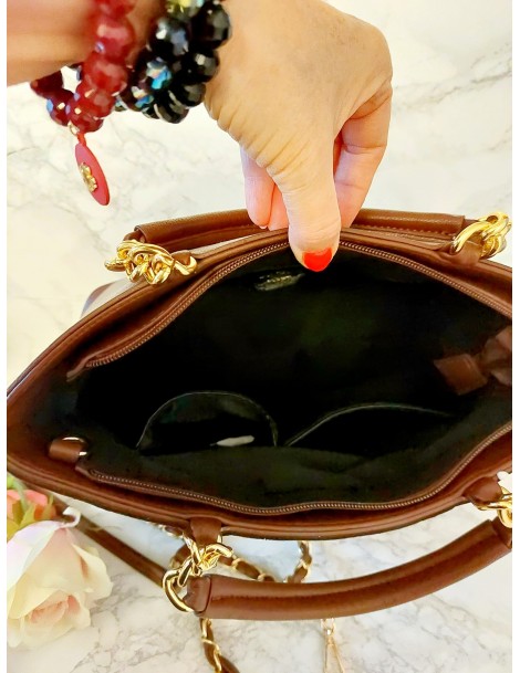 W zestawie pasek na ramię przeplatany złotym łańcuszkiem